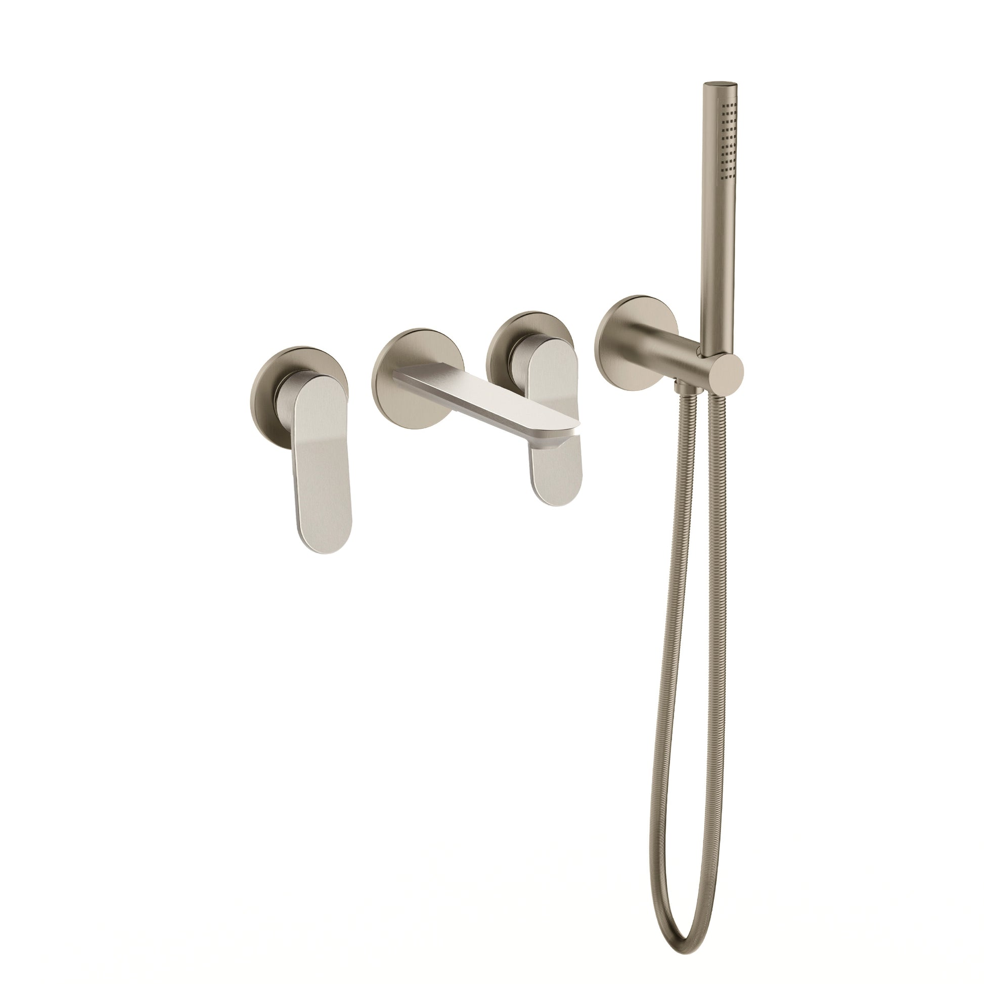 Mitigeur à encastrer pour bain avec support de douche fixe en laiton avec sortie d'eau, flexible 1,5m et douchette en abs