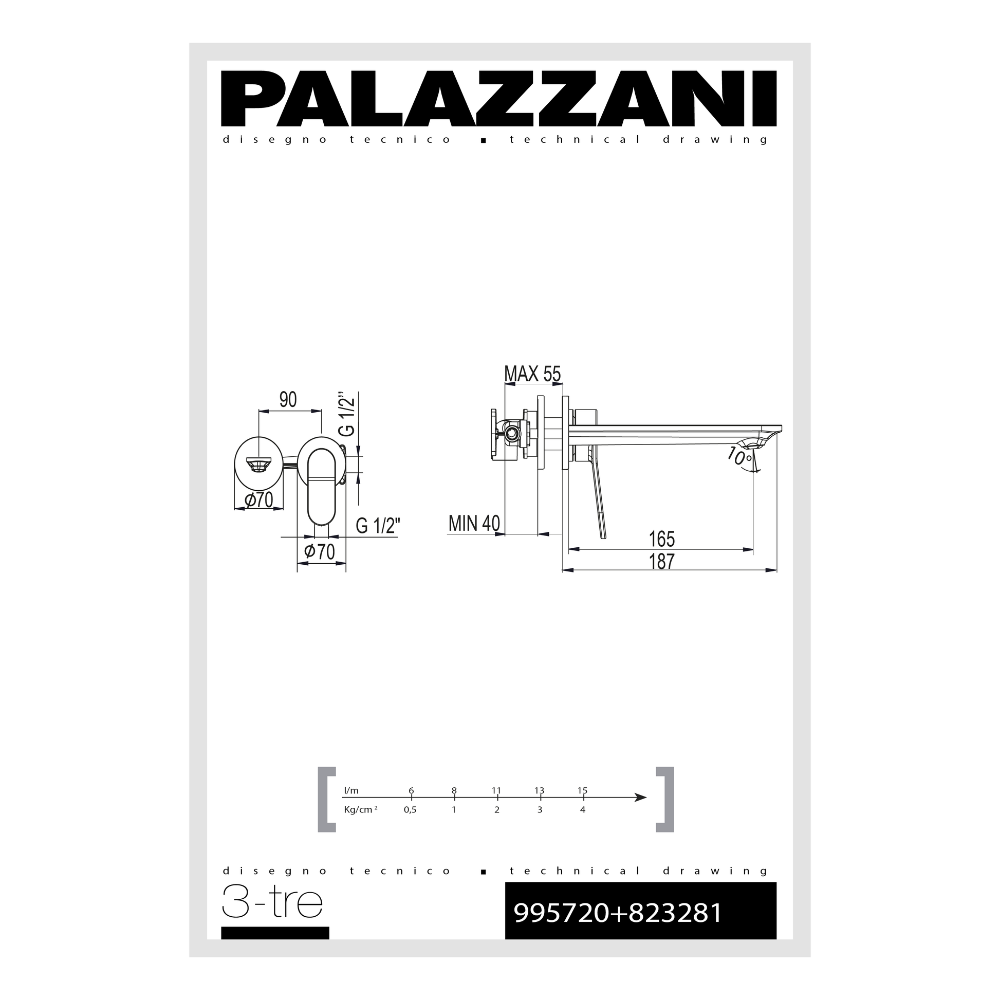 Palazzani - Robinet de lavabo mural à levier unique 35 mm 3TRE 995720 + 823281