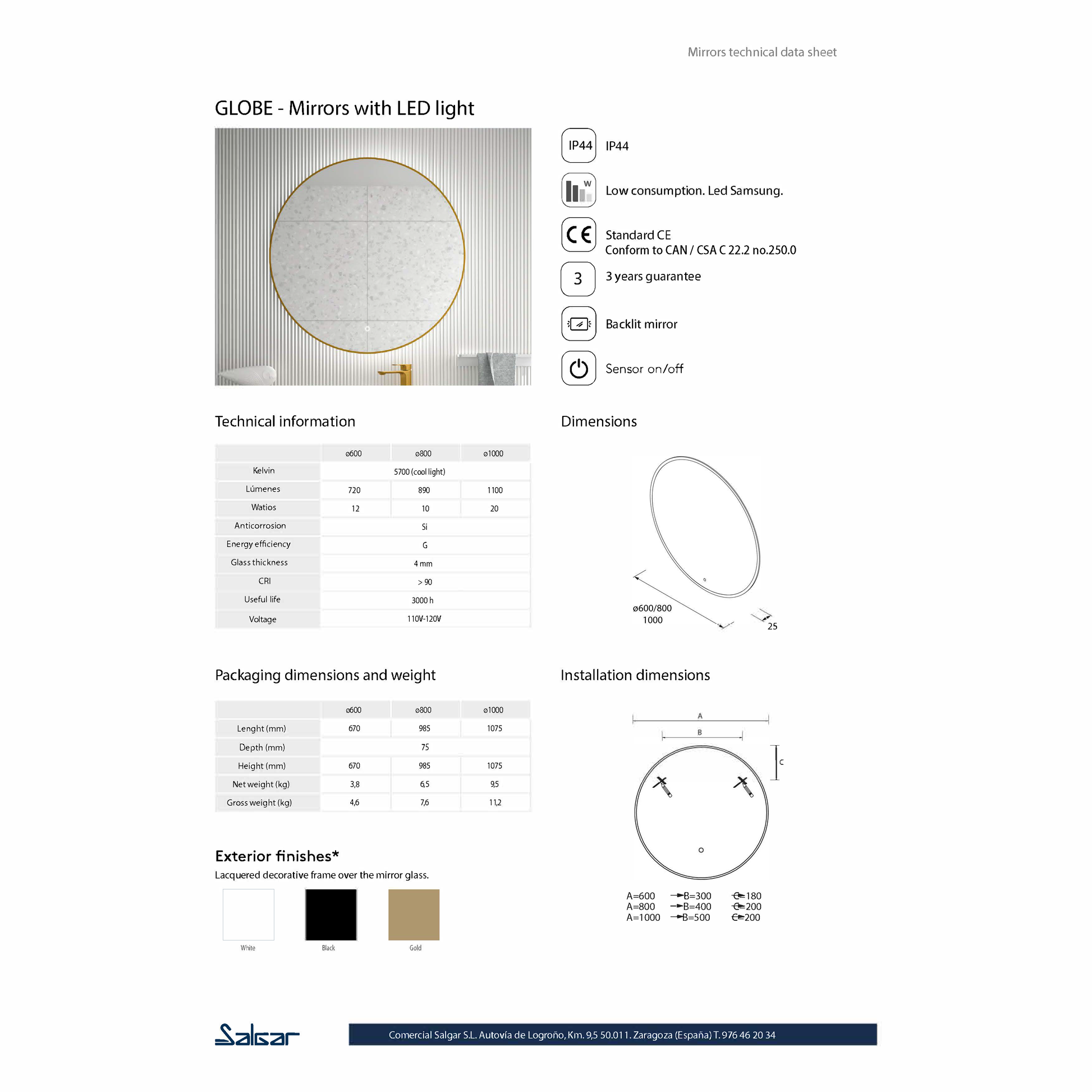 SALGAR - Globe miroir avec cadre en or satiné