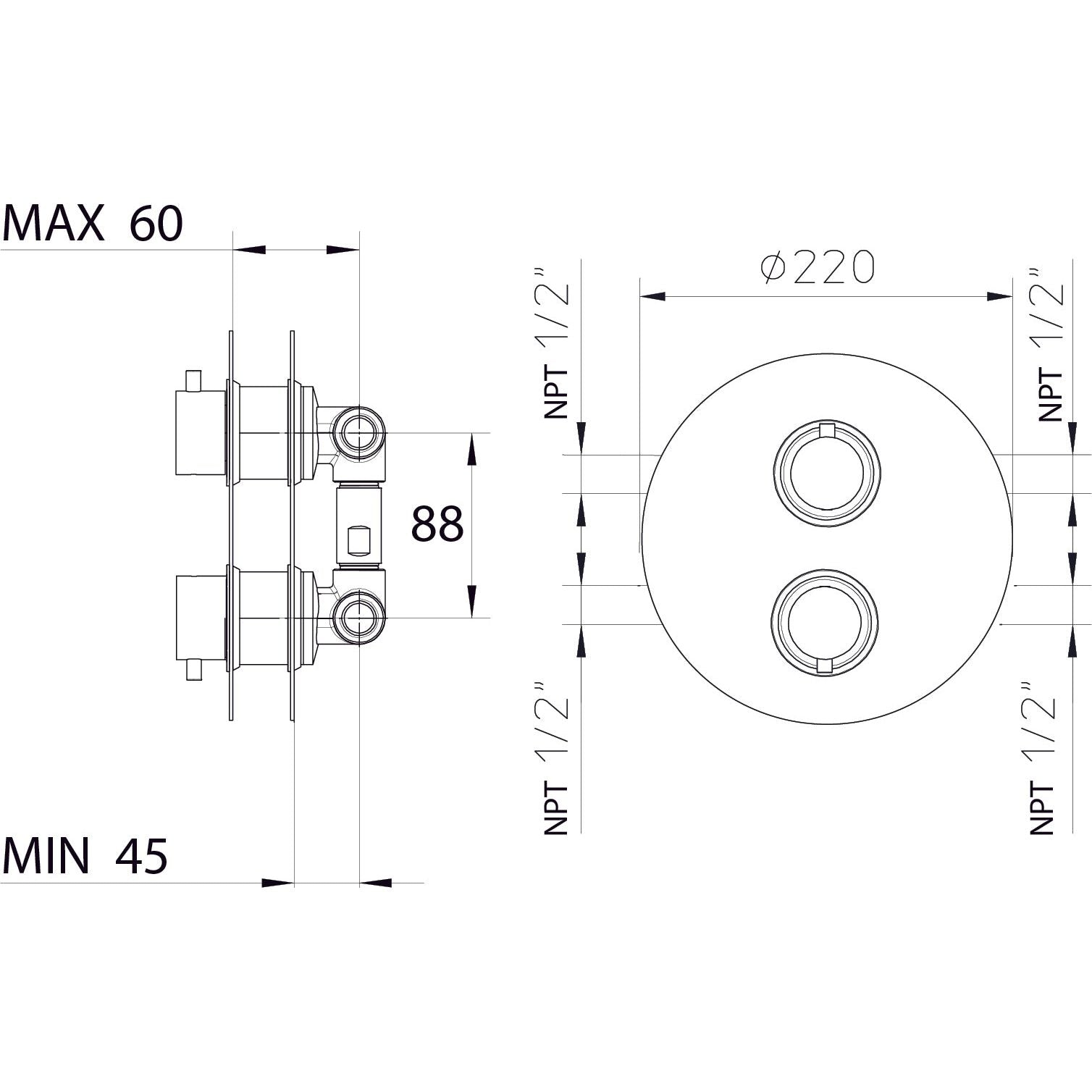 Palazzani - Robinet de douche thermostatique DIGIT 1/2/3 fonctions 992776 + 962604
