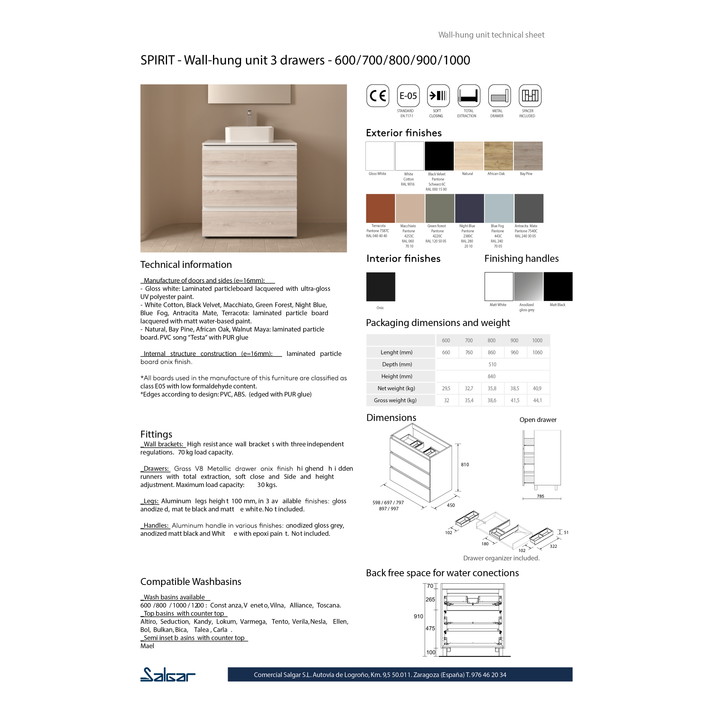SALGAR - Vanité Fussion Spirit 40 pouces (1000) 3 tiroirs (sur pied) Naturel