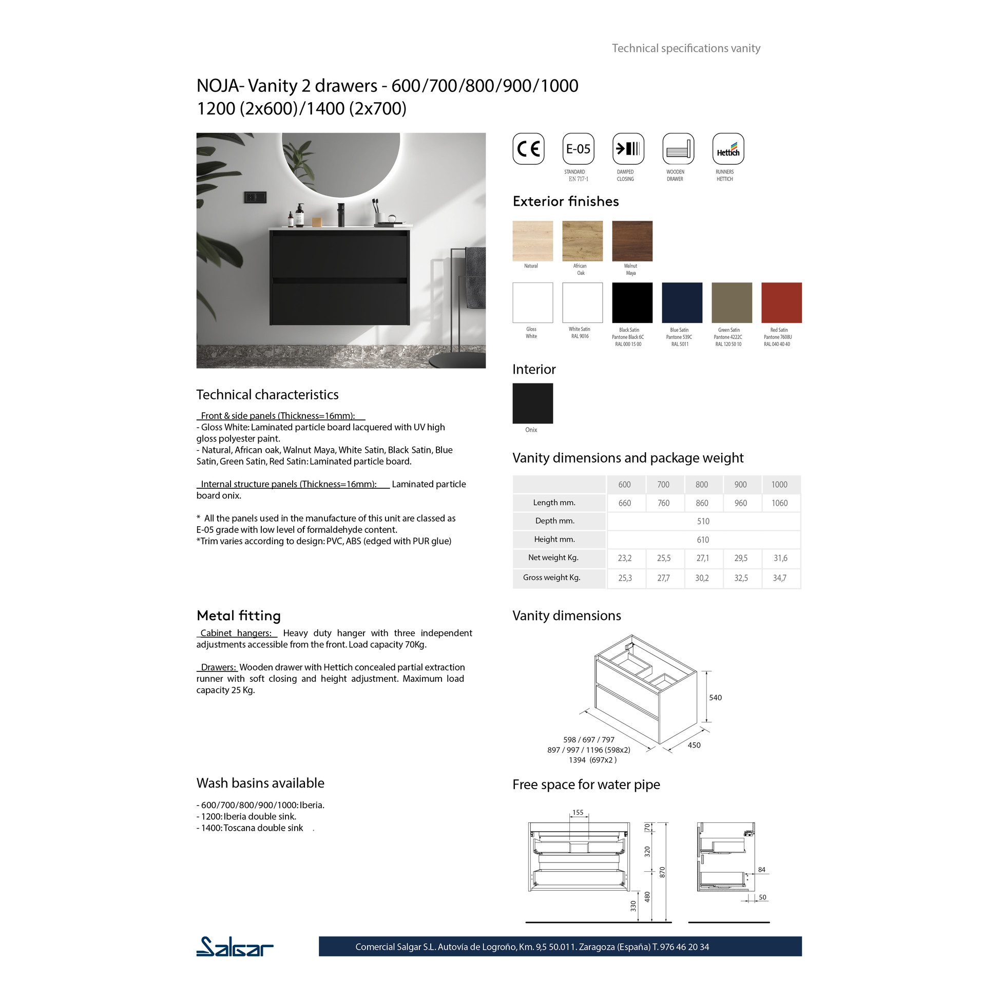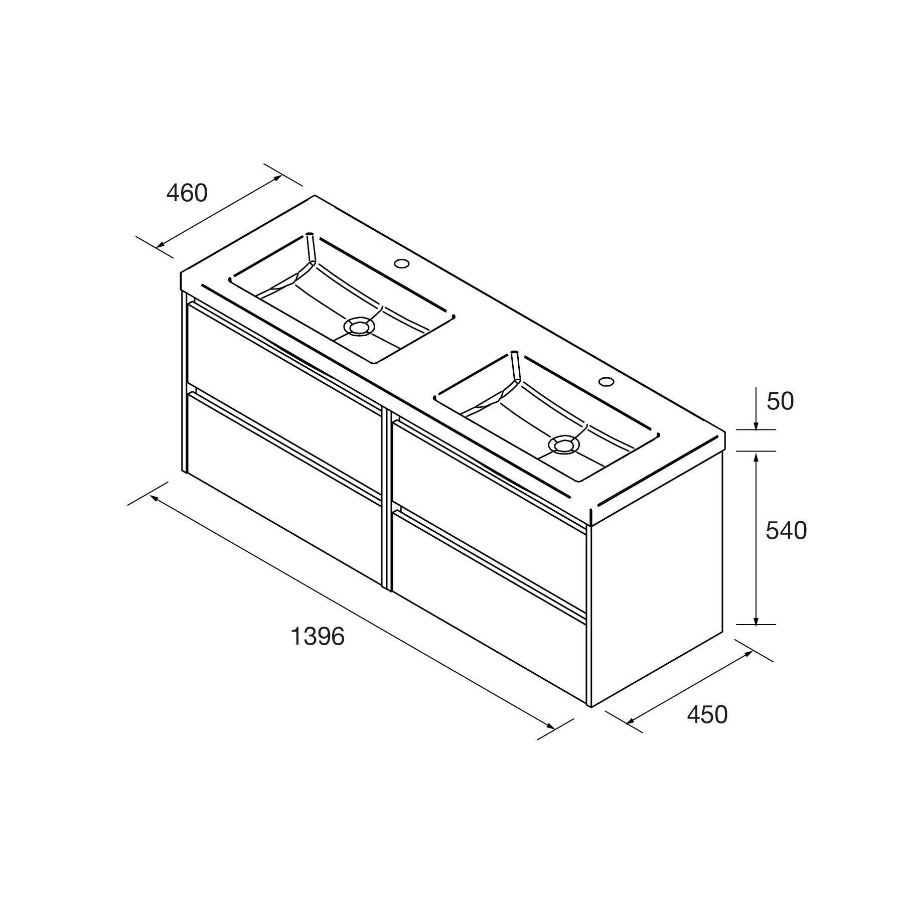 Vanité Noja 1400 avec deux tiroirs à fermeture amortie + vasque à chargement minéral Toscana