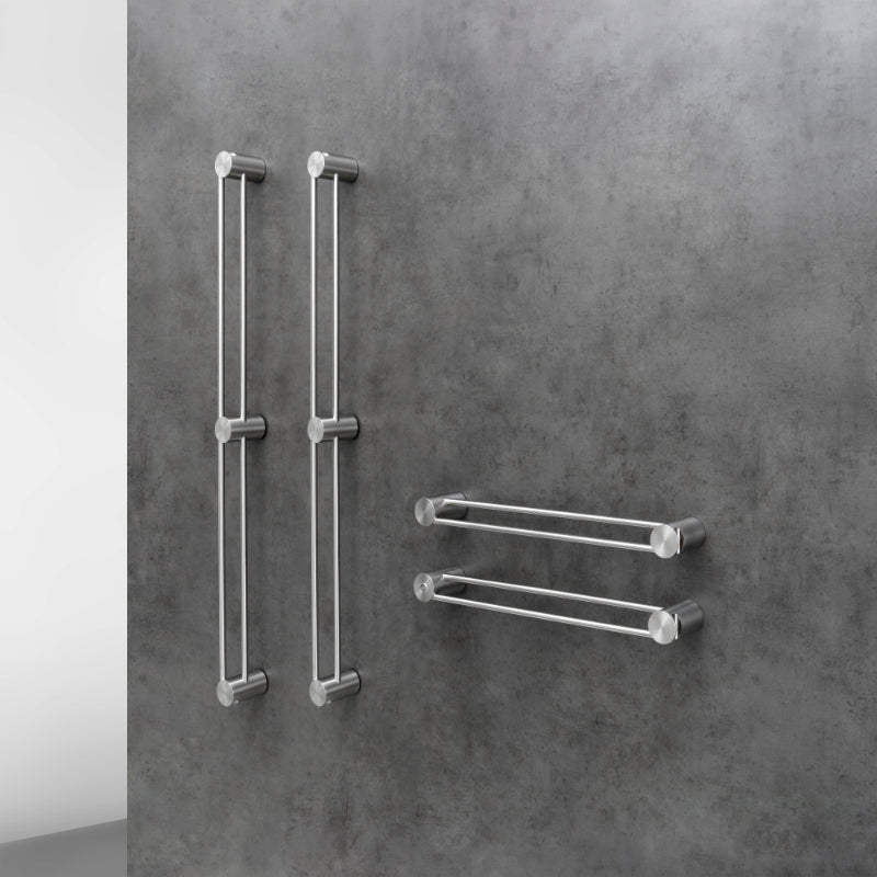 Coat hanger, towel warmer, and electric robe warmer, TWINS is made of AISI 304L stainless steel. The use of this material gives the product strength, durability, and an elegant appearance. Stainless steel is known for its resistance to corrosion and rust, making TWINS suitable for humid environments such as the bathroom. Its solid and sturdy structure ensures perfect stability and support for garments and towels. Additionally, thanks to its efficient heating system, it can keep garments and towels warm and dry, offering extra comfort during use. Thanks to its low voltage power supply, TWINS is safe and easy to use. It can be installed both vertically and horizontally, offering ideal positioning flexibility for any space. Furthermore, thanks to its modularity, the configuration of TWINS can be customized based on the dimensions and specific requirements of the project. TWINS is a product that combines functionality, sustainability, and design excellently. It not only offers the convenience of an electric coat hanger but also adds a touch of style and sophistication to the home environment. Whether it's a bathroom, bedroom, or entryway, TWINS fits perfectly into any space, offering a superior user experience.