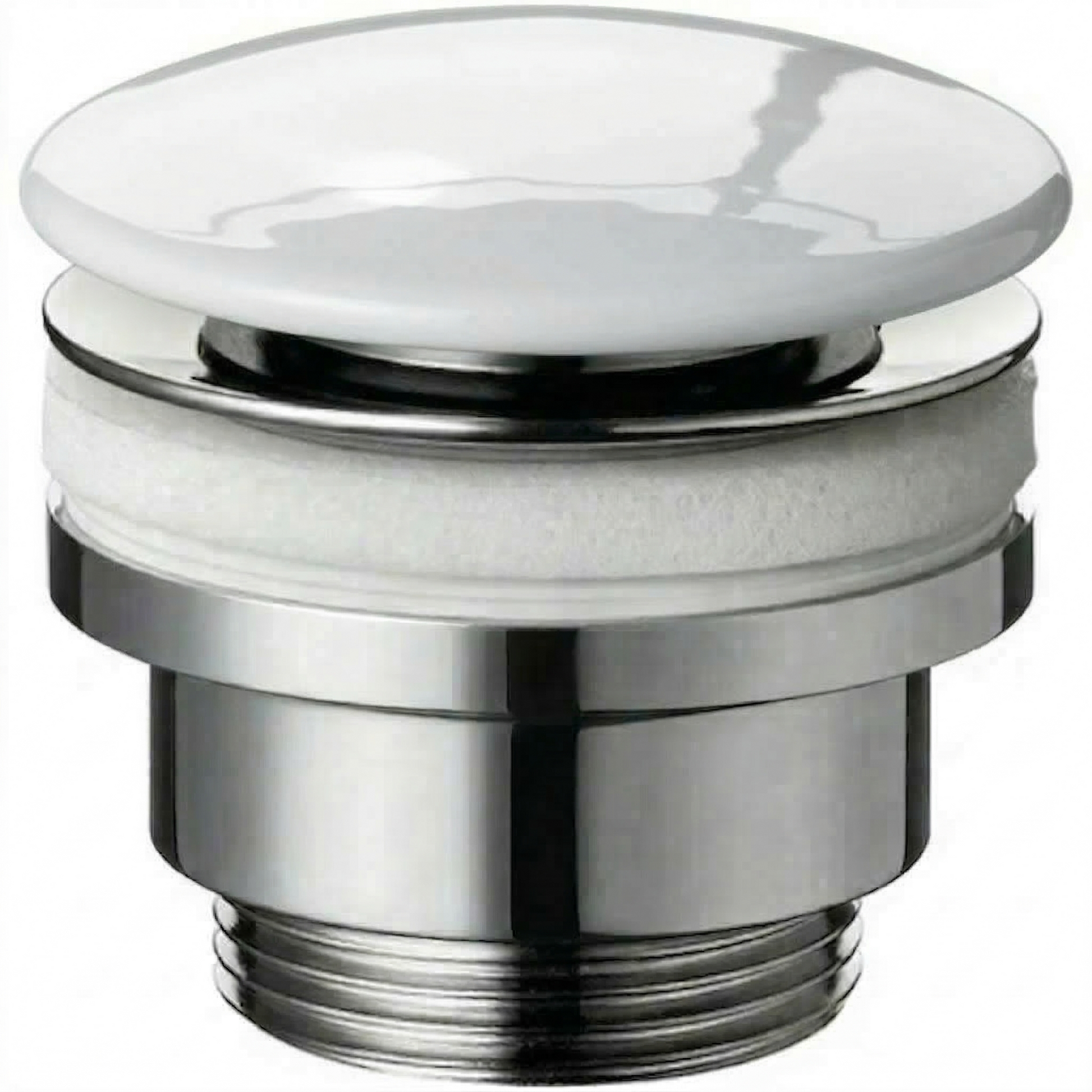 Universal brass Clic-Clac or freeflow drain with porcelain finish