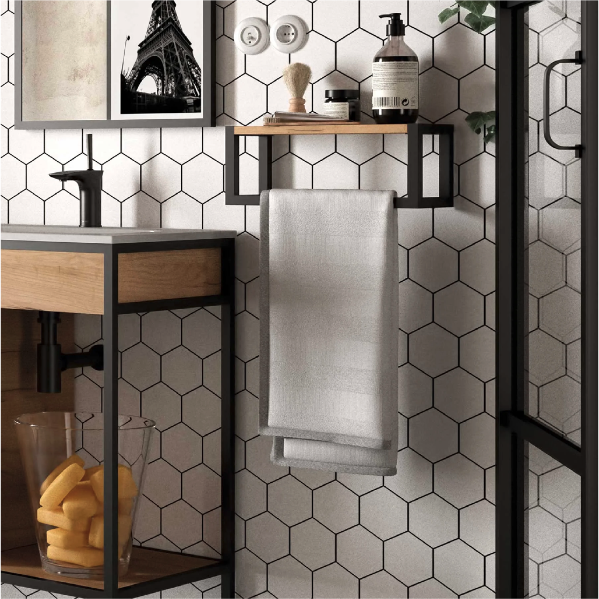 VINCI wall mounted shelf with towel bar