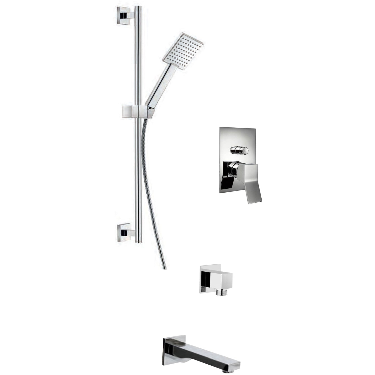 YOUNG shower kit including hand shower kit with rail, brass water outlet, wall mounted brass spout and single lever pressure balanced valve with diverter